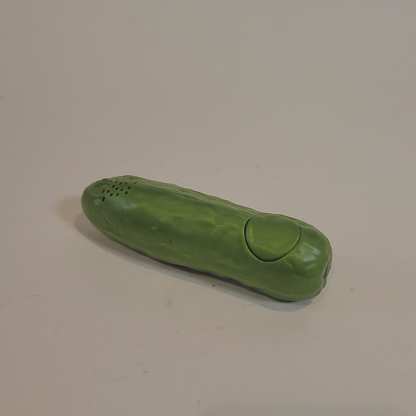 Are you sick and tired of trying to convince a jar of pickles to yodel using melodious mind bullets and sheer force of will? So were we. At last, the Electronic Yodelling Pickle that you have always hoped for! Each 5-1/4'' long plastic pickle yodels its little heart out at the push of a button. Three LR44 batteries included.