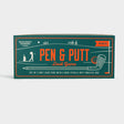 Practice your putting skills with the Pen & Putt Desk Game. This elegant desk set comes with a set of 3 Golf Club Pens with blue, black and red ink, and inside the box is a mini Pitch and Putt practice green, complete with flagstick and 2 mini golf balls.