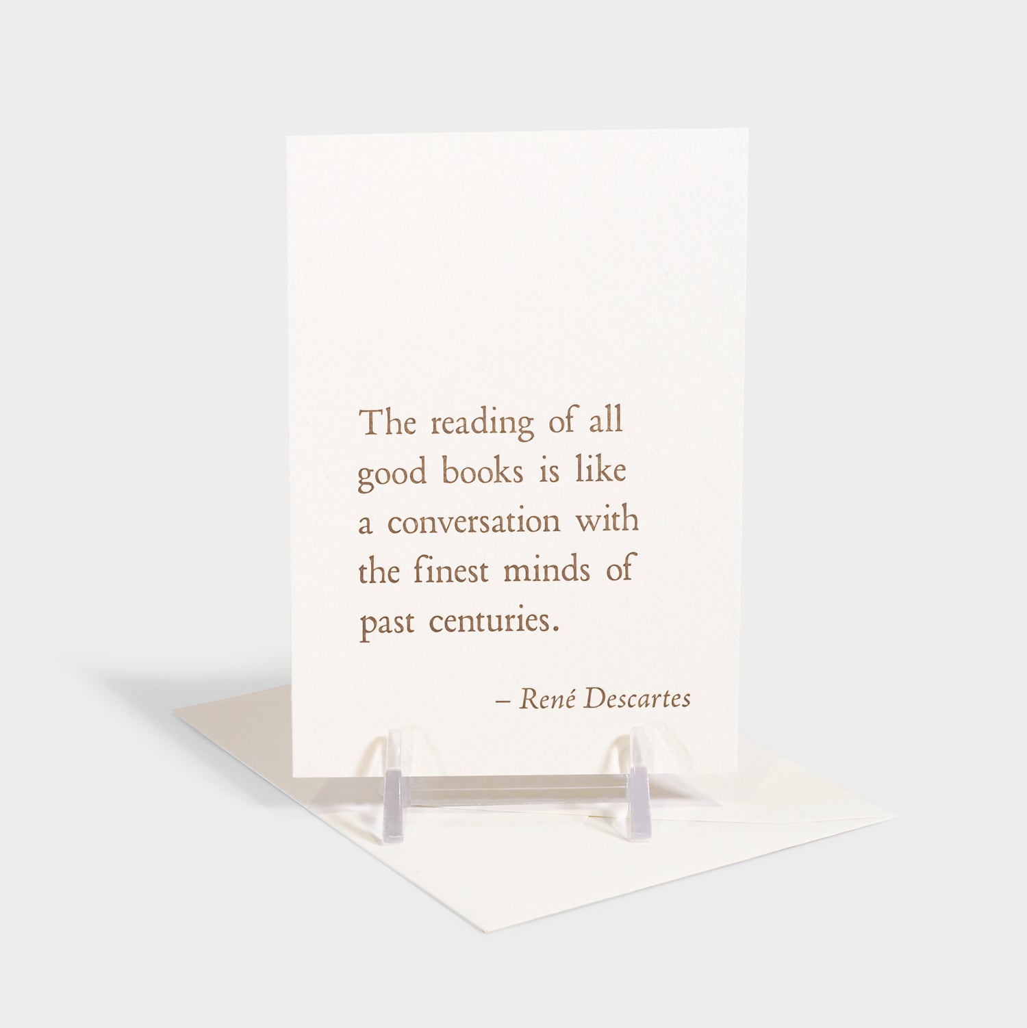 Image reads, "The reading of all good books is like a conversation with the finest minds of past centuries. — Rene Descartes."