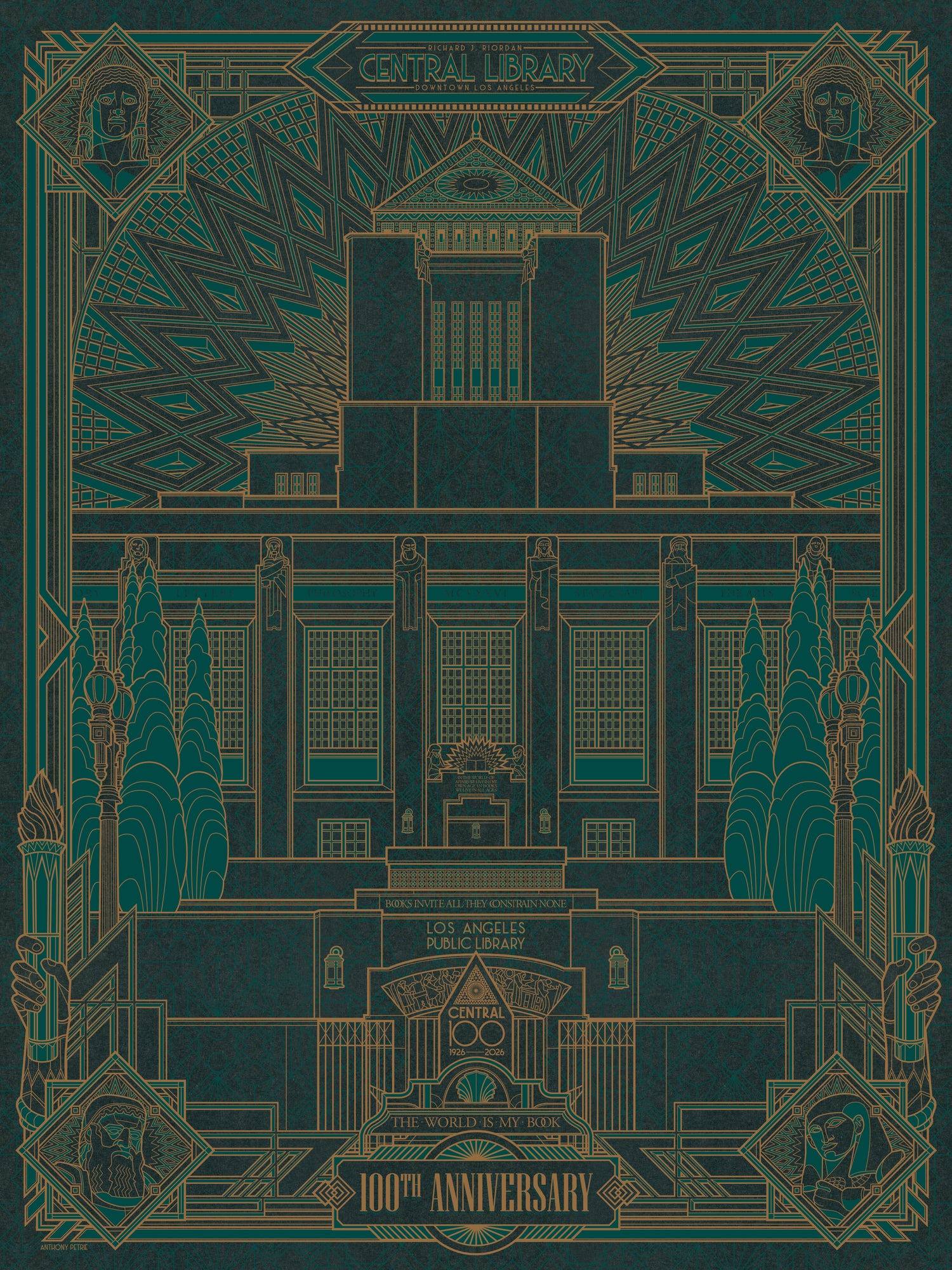Art Deco Print of Central Library by Anthony Petrie - Centennial Edition is backordered and will ship as soon as it is back in stock.