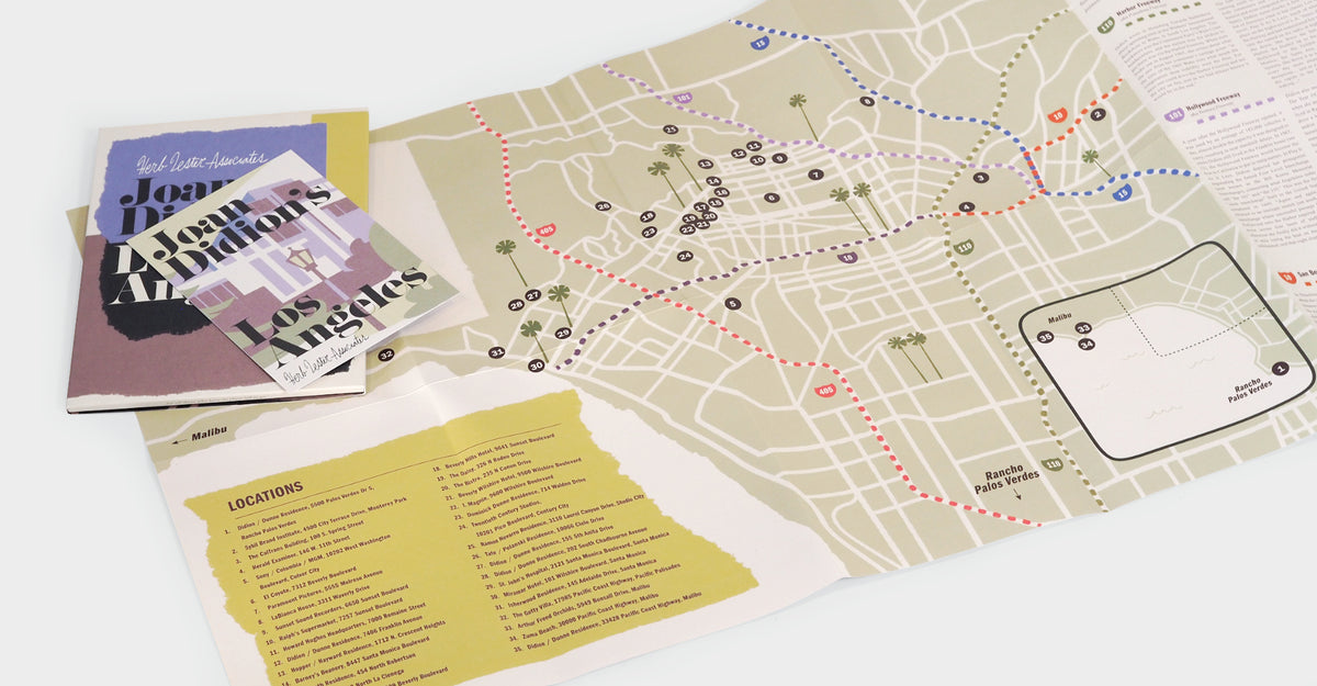 The back includes detailed info about each location. The tour also covers locations related to the Manson Family murders, which Didion wrote about extensively.